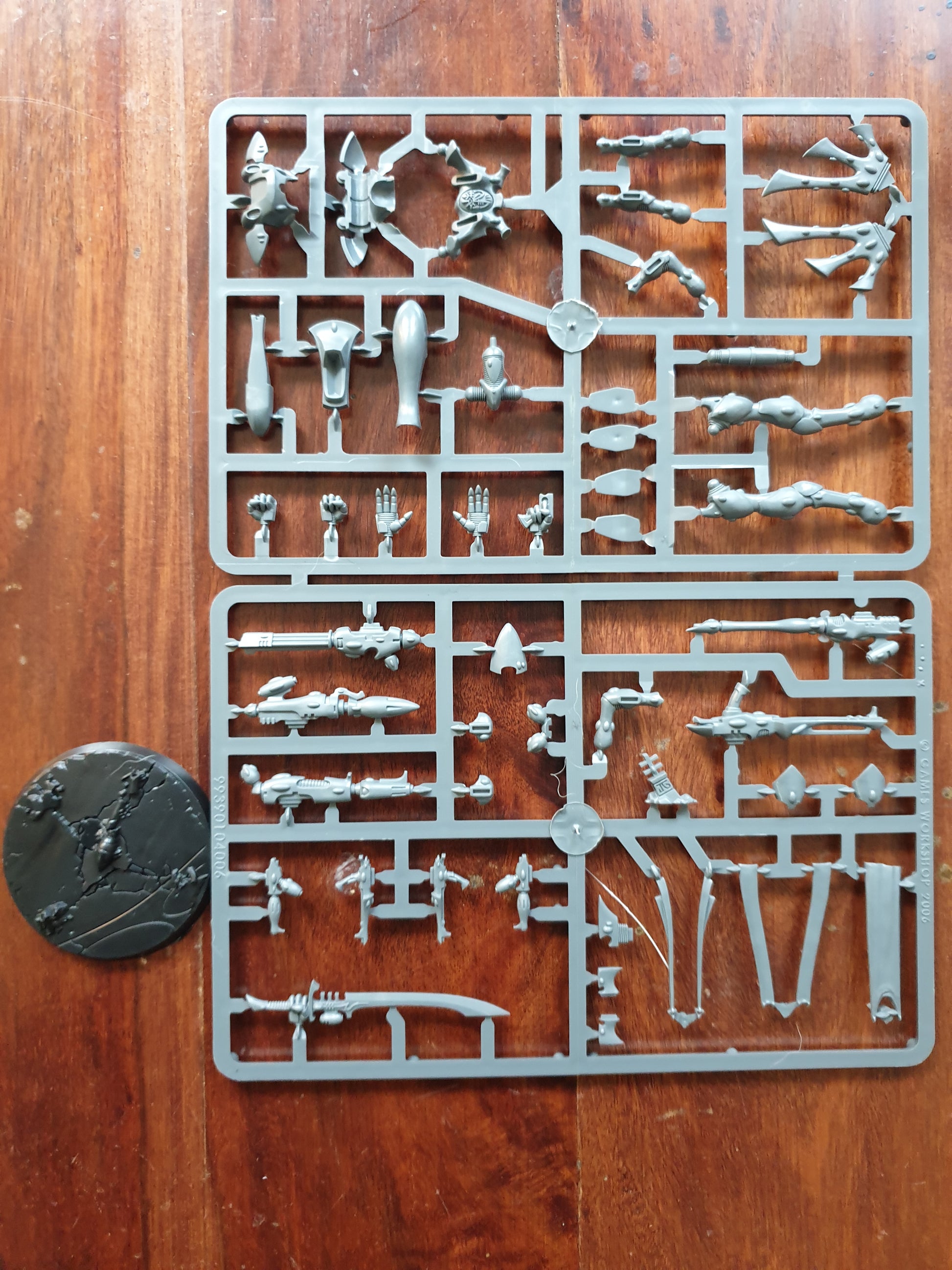 Der Gussrahmen des Phantomlords ist der Standard Multipart Rahmen von Games Workshop mit verschiedenen Baumöglichkeiten der Modelle. Aus dem Rahmen kann 1 Modelle gebaut werden. Die Base ist dabei.