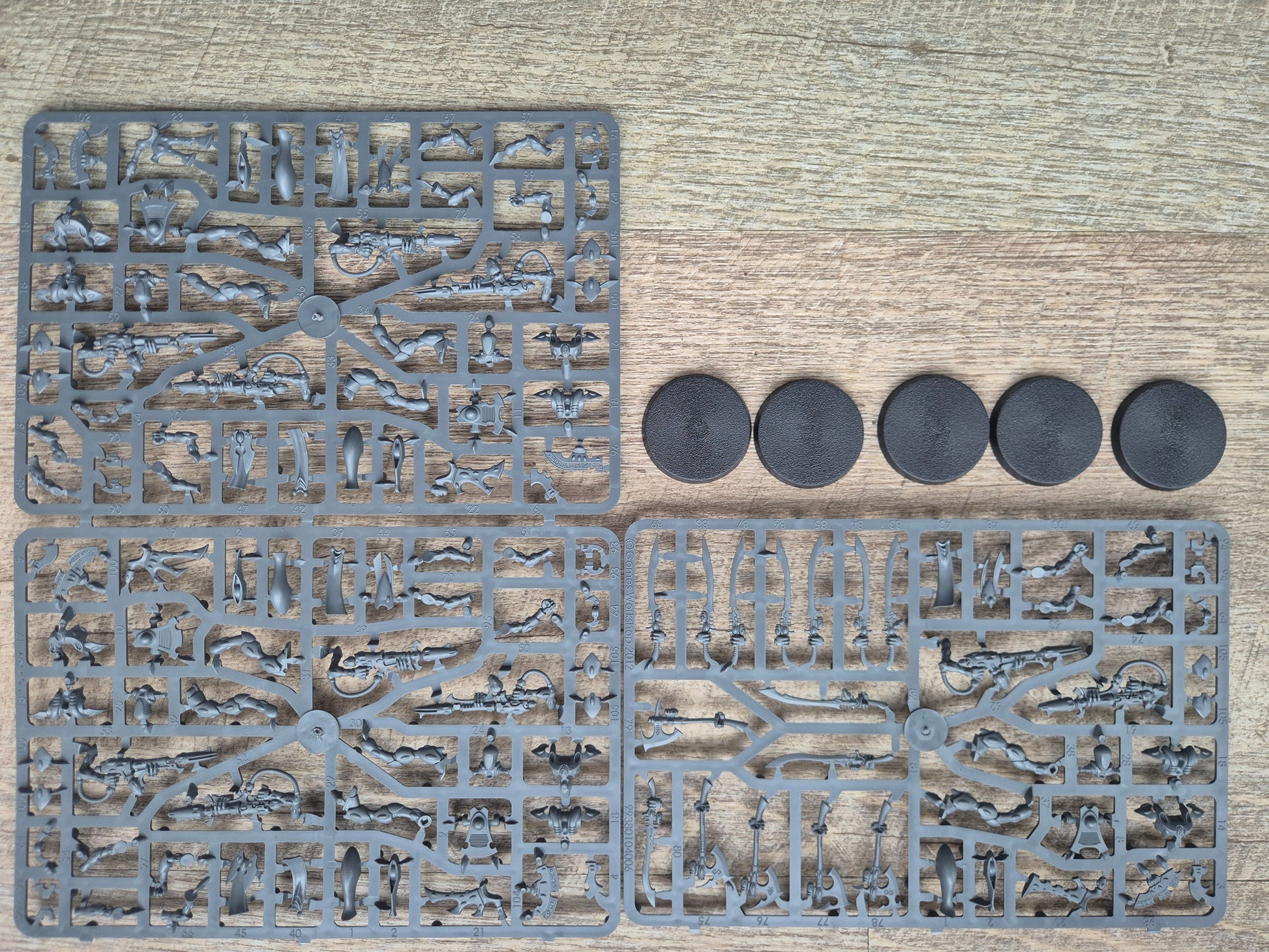 Die Gussrahmen der Phantomwächter sind die Standard Multipart Rahmen von Games Workshop mit verschiedenen Baumöglichkeiten der Modelle. Dieses Set bietet verschiedene Ausrüstung bzw. verschiedene Bewaffnungen. Aus dem Rahmen können 5 Modelle gebaut werden. Die Bases sind dabei.
