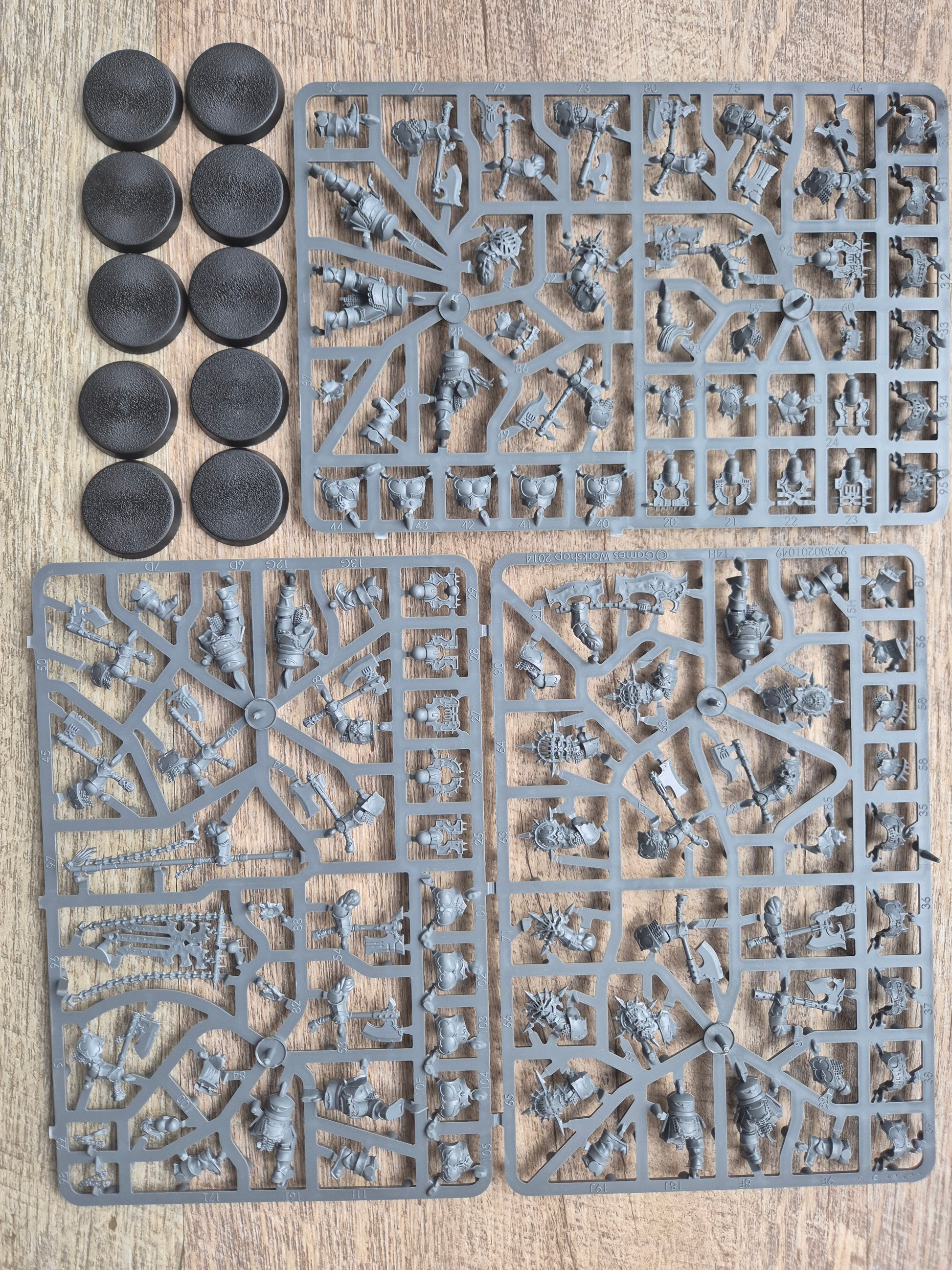 Der Gussrahmen der Blood Warriors ist der Standard Multipart Rahmen von Games Workshop mit verschiedenen Baumöglichkeiten der Modelle. Dieses Set bietet verschiedene Ausrüstung, verschiedene Varianten der Köpfe usw. Aus dem Rahmen können 10 Modelle gebaut werden. Die Bases sind dabei.