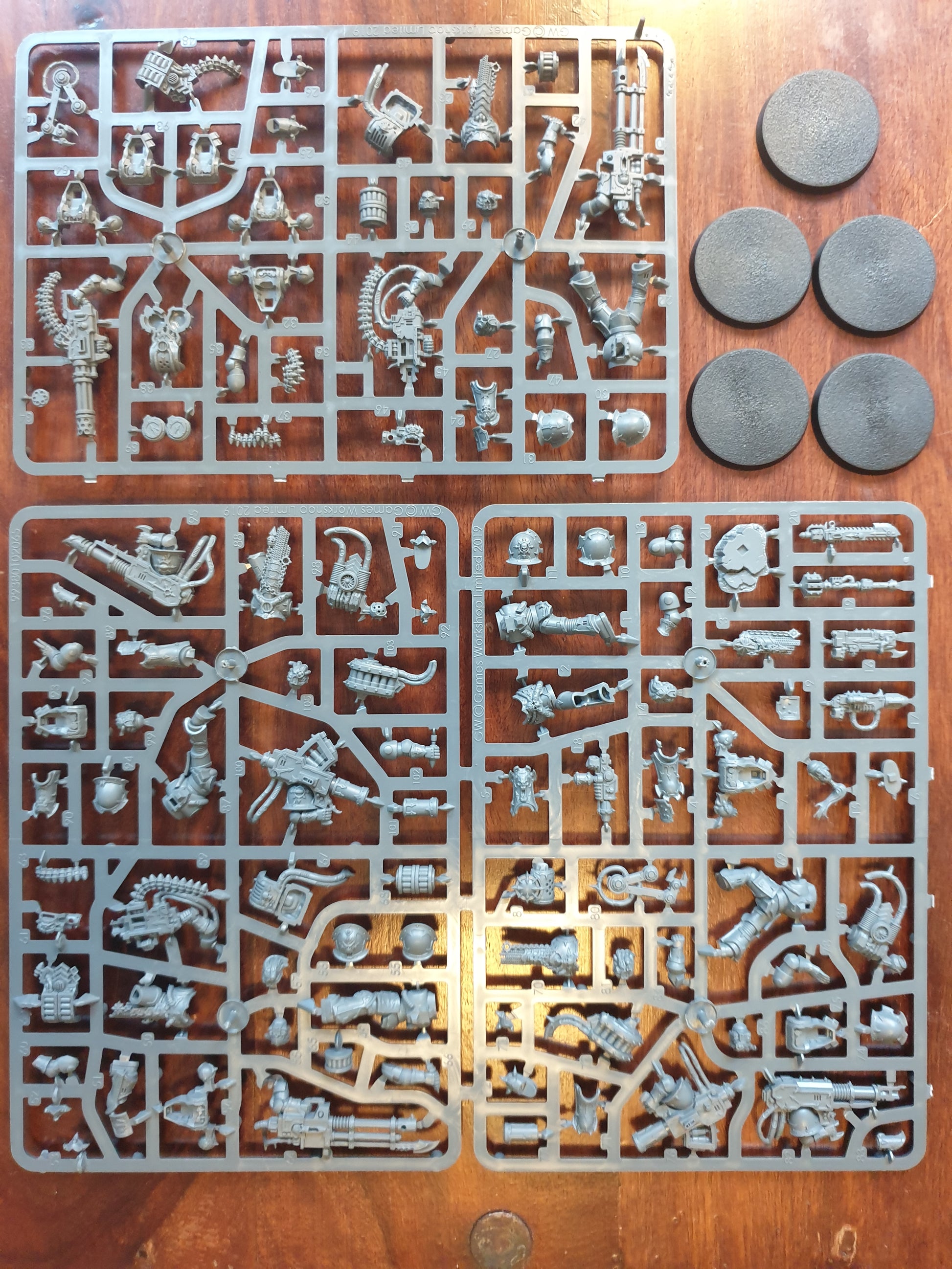 Die Gussrahmen der Havocs sind die Standard Multipart Rahmen von Games Workshop mit verschiedenen Baumöglichkeiten. Verschiedene Ausrüstung, verschiedene Varianten der Köpfe usw. Die Bases sind dabei. Aus diesem Set können 5 Modelle gebaut werden.