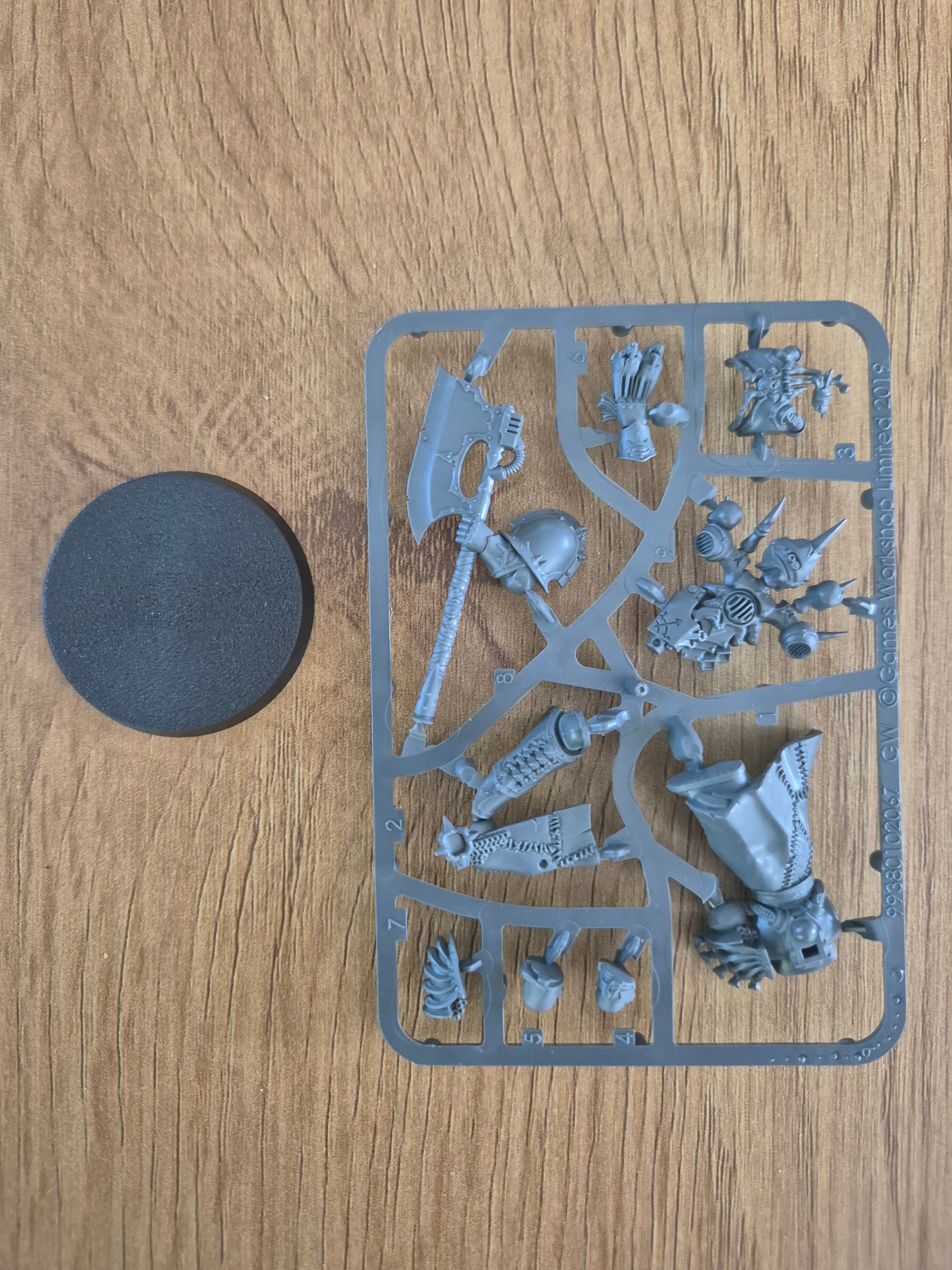 Der Gussrahmen des Modells ist der Standard Rahmen von Games Workshop. Die Base ist dabei.