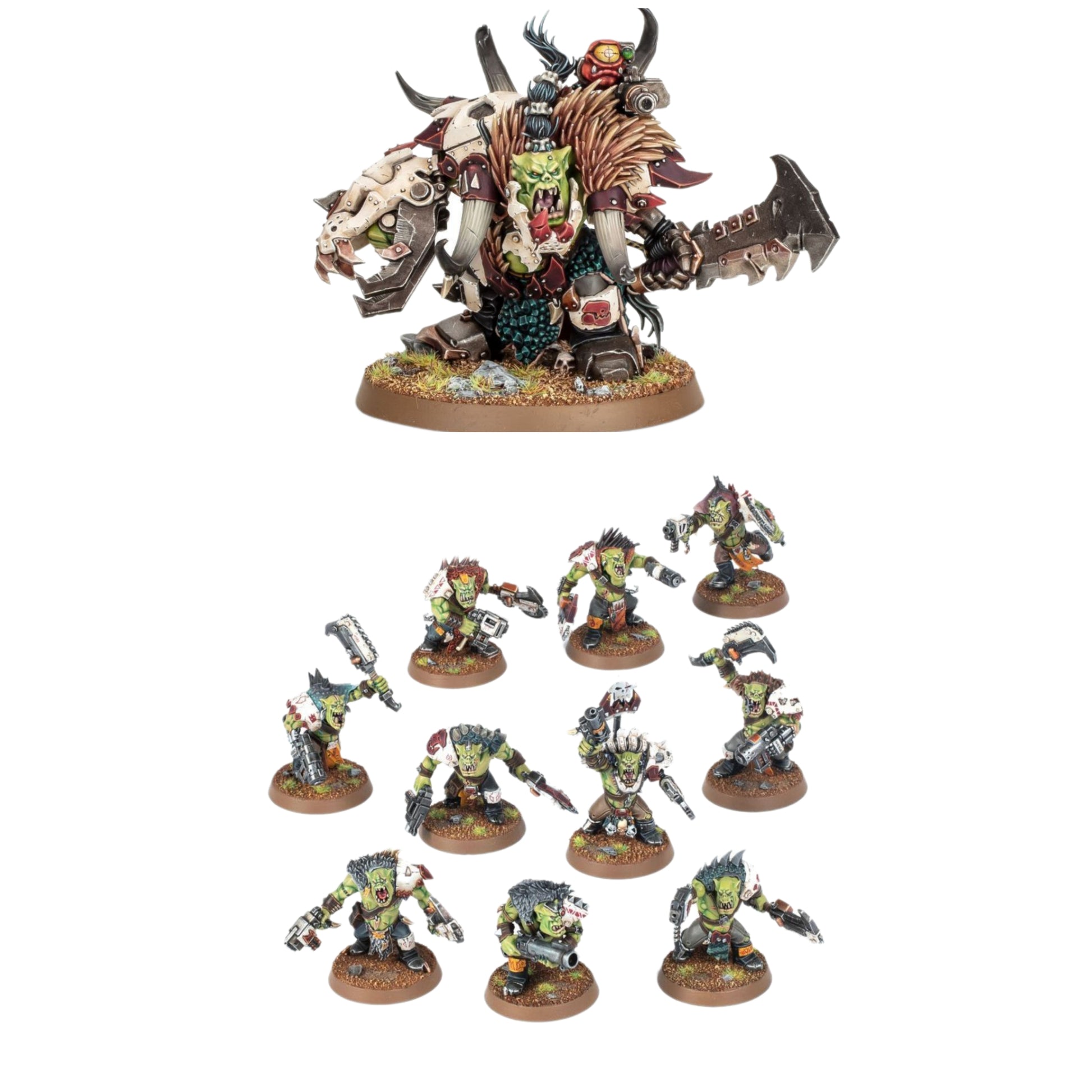 Der Gussrahmen der Viechjäga ist der Standard Multipart Rahmen von Games Workshop. Aus dem Rahmen können 10 Orks gebaut werden. Die Bases sind dabei.