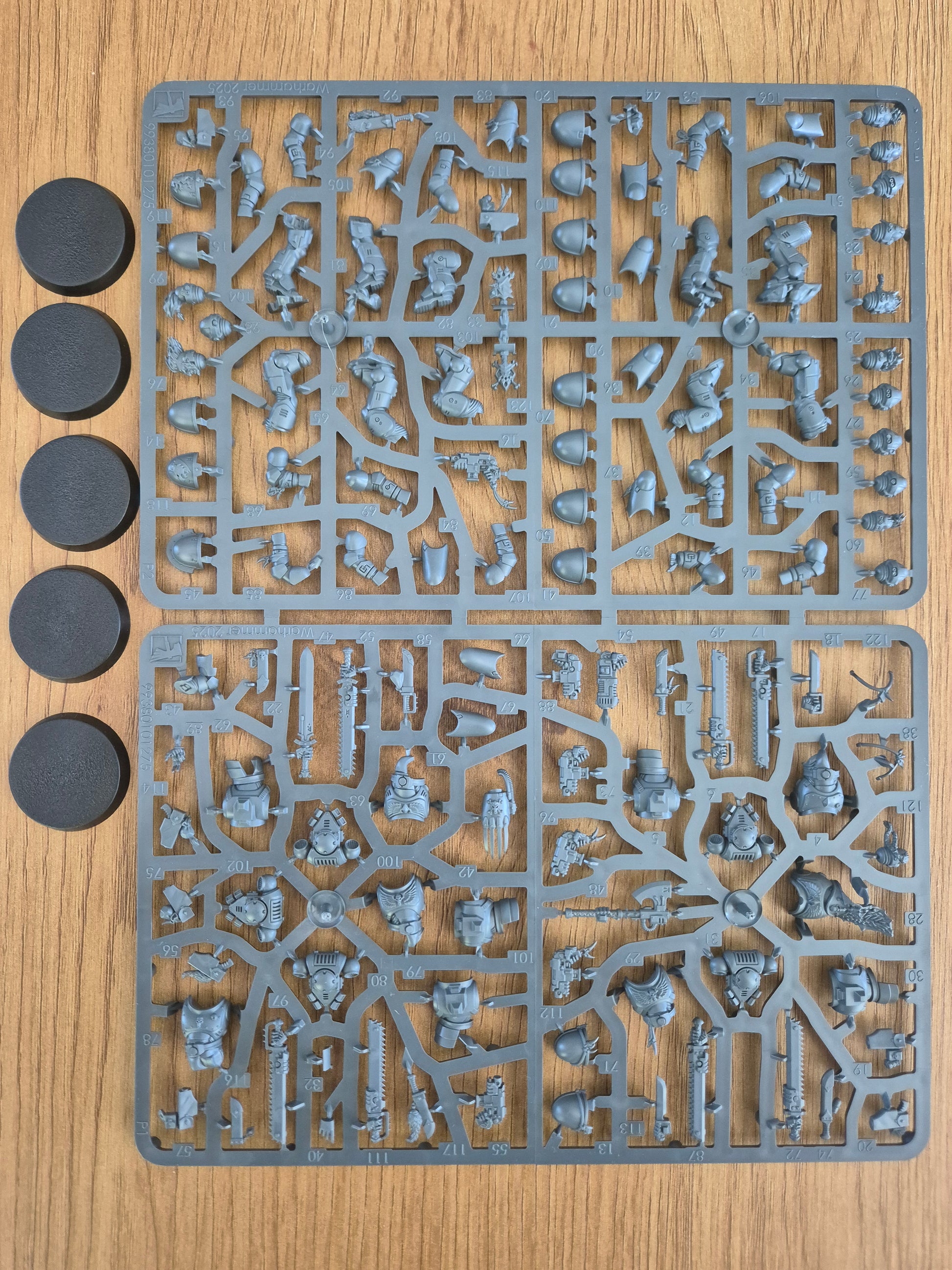 Der Gussrahmen der Graumähnen ist der Standard Multipart Rahmen von Games Workshop mit verschiedenen Baumöglichkeiten. Verschiedene Ausrüstung, verschiedene Varianten der Köpfe usw. Die Bases sind dabei. Aus diesem Set können 5 Modelle gebaut werden.