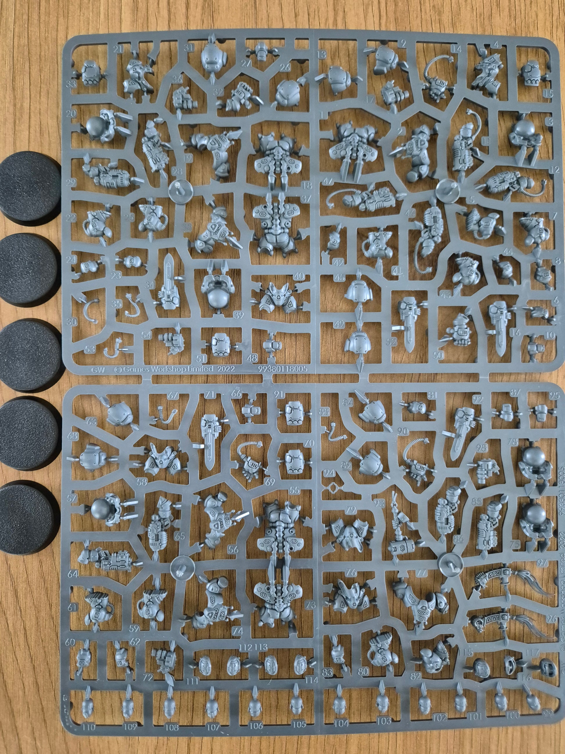 Die Gussrahmen der Einhyr Flammenwächter sind die Standard Multipart Rahmen von Games Workshop mit verschiedenen Baumöglichkeiten. Verschiedene Ausrüstung, verschiedene Varianten der Köpfe usw. Die Bases sind dabei. Aus diesem Set können 5 Modelle gebaut werden
