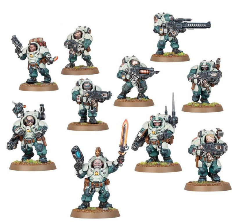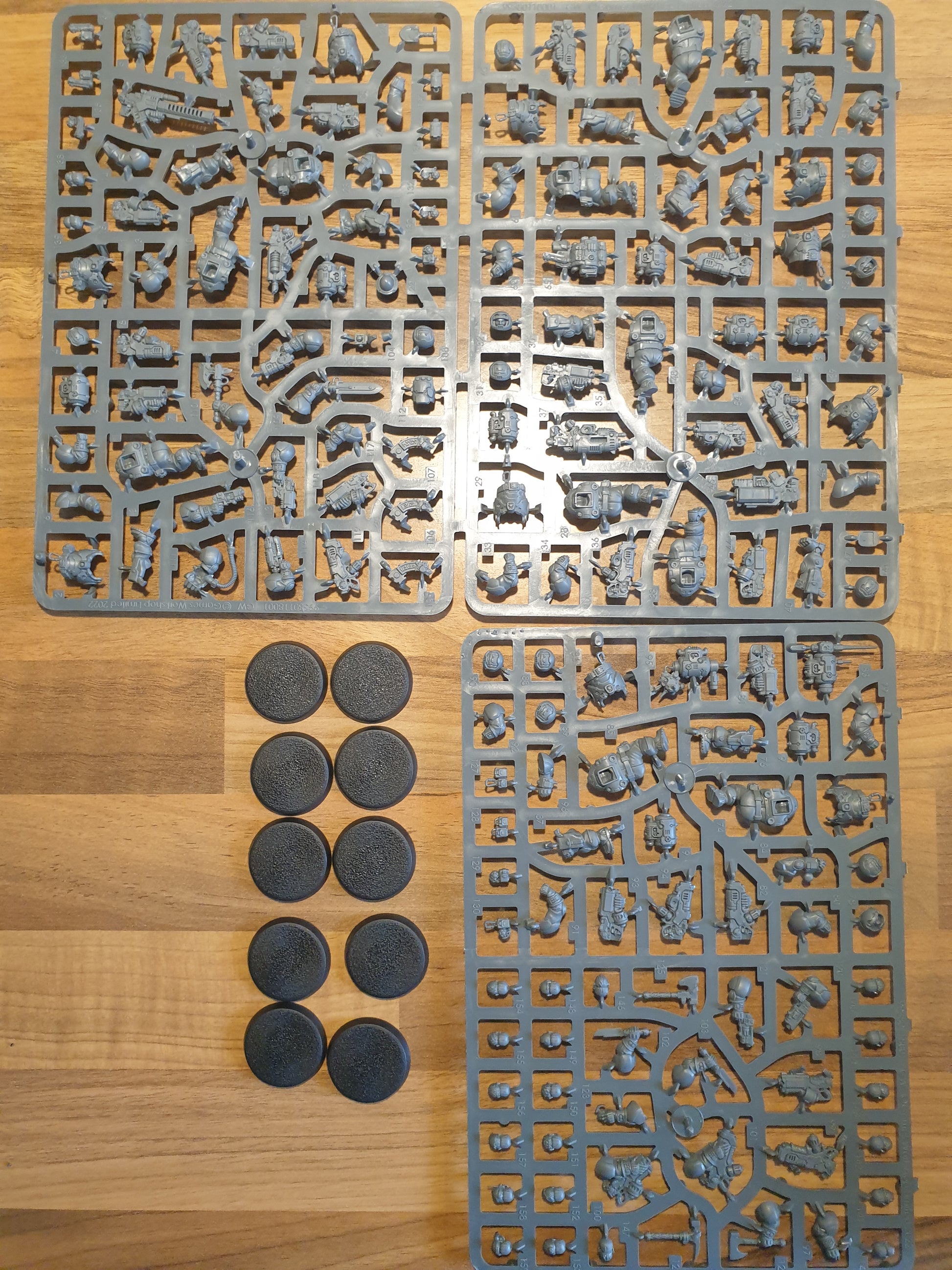 Die Gussrahmen der Flammkyn Krieger sind die Standard Multipart Rahmen von Games Workshop mit verschiedenen Baumöglichkeiten der Marines. Verschiedene Ausrüstung, verschiedene Varianten der Köpfe usw. Aus dem Rahmen können 10 Modelle gebaut werden. Die Bases sind dabei.