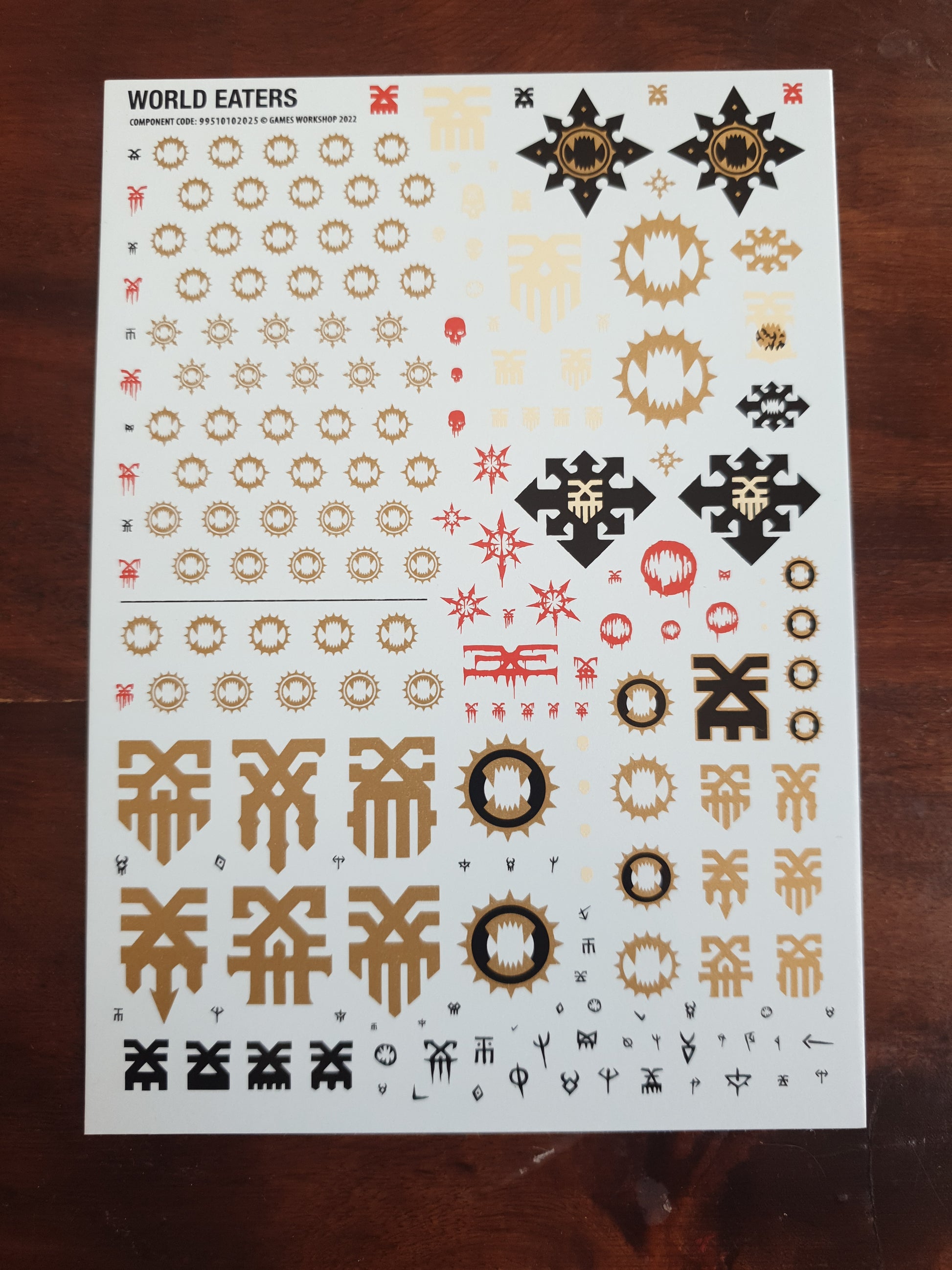 Angeboten wird der neue große Transfer Sheet der World Eaters.
